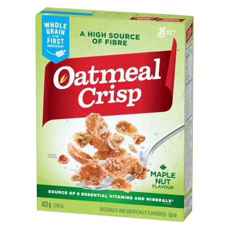 Your search for good sources of fibre has ended. Oatmeal Crisp Breakfast Cereal is here for you. Oatmeal Crisp Honey Crunch Breakfast Cereal provides a wholesome start to your day and an easy way to add higher fibre to your diet. This crunchy fibre cereal combines flakes from whole grain oats and wheat with tasty honey oat clusters. Oatmeal Crisp Almond Breakfast Cereal is perfect for breakfast with milk or yogurt, as an afternoon snack, or added to your favourite trail mix. Oatmeal Crisp Honey Crunch Breakfast Cereal is a family favourite perfect for adults, kids, and everyone in between. This tasty cereal features whole grain as the first ingredient and is a high source of fibre. Contains one 423 gram cereal box in total.